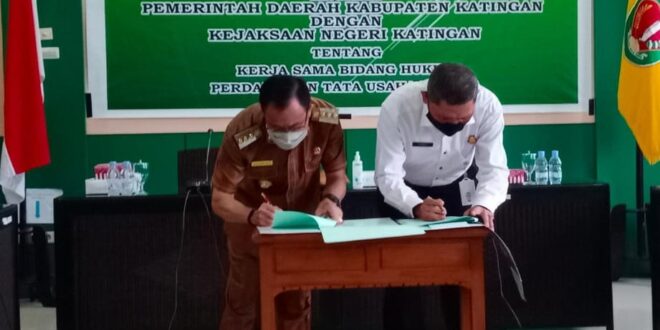 BERITAKALTENG.com – KASONGAN – Pemerintah Kabupaten (Pemkab) Katingan teken penandatanganan kesepakatan bersama atau MoU bersama Kejaksaan Negeri Katingan dalam bidang hukum Perdata dan Tata Usaha Negara, di ruang rapat Bupati Katingan, Senin 10 Januari 2022.