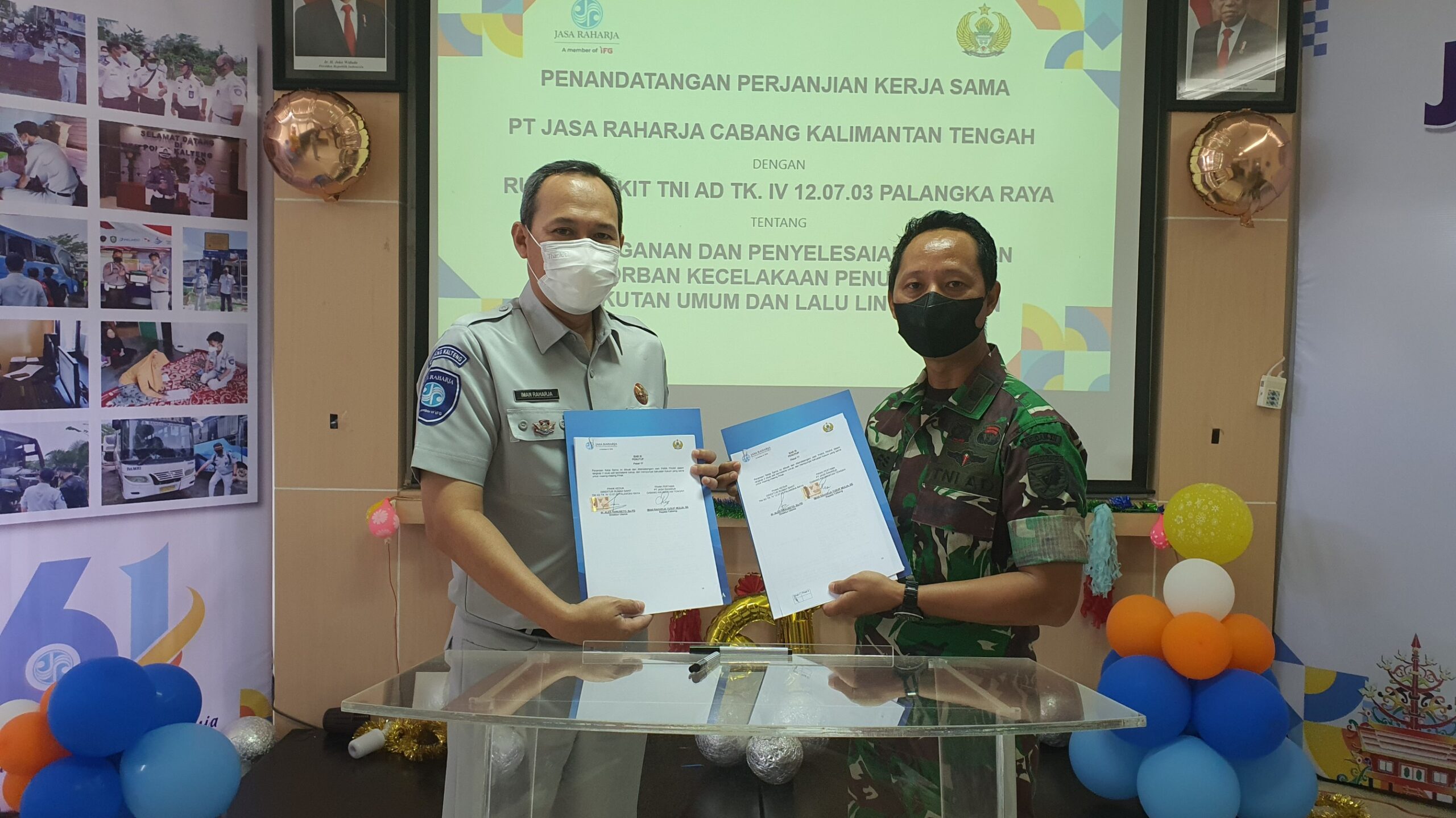 Jasa Raharja Cabang Kalimantan Tengah, kembali menjalin kerja sama dengan rumah sakit swasta yang ada di Palangka Raya, Yakni Rumah Sakit TNI AD TK. IV Palangka Raya, Selasa (18/01/2022).