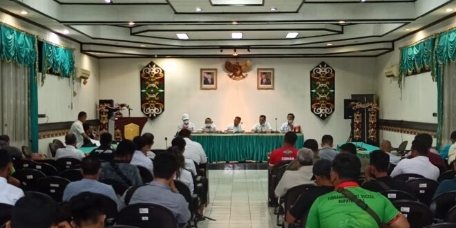 FOTO : Ketua KONI Kabupaten Kotawaringin Timur, Ahyar Umar saat pimpin rapat persiapan Porcab, Rabu 19 Januari 2022.