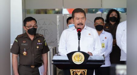 BERITAKALTENG.com – JAKARTA – Jaksa Agung RI, Burhanuddin didampingi Jaksa Agung Muda Intelijen Dr. Amir Yanto, Jaksa Agung Muda Tindak Pidana Khusus Dr. Febrie Adriansyah, Kepala Pusat Penerangan Hukum Leonard Eben Ezer Simanjuntak, Asisten Umum Jaksa Agung (ASUM) Kuntadi, dan Asisten Khusus Jaksa Agung (ASUS) Hendro Dewanto menyampaikan perkembangan perkara dugaan tindak pidana korupsi pada PT. Garuda Indonesia (persero) di Lobby Gedung Menara Kartika Adhyaksa Jakarta Selatan, Rabu (19/1/2022).
