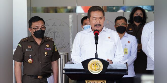 BERITAKALTENG.com – JAKARTA – Jaksa Agung RI, Burhanuddin didampingi Jaksa Agung Muda Intelijen Dr. Amir Yanto, Jaksa Agung Muda Tindak Pidana Khusus Dr. Febrie Adriansyah, Kepala Pusat Penerangan Hukum Leonard Eben Ezer Simanjuntak, Asisten Umum Jaksa Agung (ASUM) Kuntadi, dan Asisten Khusus Jaksa Agung (ASUS) Hendro Dewanto menyampaikan perkembangan perkara dugaan tindak pidana korupsi pada PT. Garuda Indonesia (persero) di Lobby Gedung Menara Kartika Adhyaksa Jakarta Selatan, Rabu (19/1/2022).