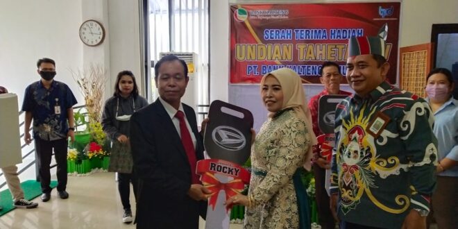 Sementara, undian hadiah utama mobil Daihatsu Rocky yang kedua, diterima seorang pengusaha Furniture di Kota Kasongan atas nama Ibu (Rani). ” Sebagai nasabah tabungan Taheta di Bank Kalteng ini sudah lama yaitu ketika kantornya masih Cabang Pembantu Kasongan dan sampai sekarang sudah menjadi Bank Kalteng Cabang Kasongan. Saya bangga dan ucapkan terima kasih kepada pihak Bank,” ungkap Rani.