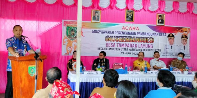 Beritakalteng.com, BUNTOK – Infrastruktur masih menjadi usulan terbanyak yang disampaikan oleh warga Desa Tamparak Layung, Kecamatan Dusun Utara, Kabupaten Barito Selatan dalam pelaksanaan Musyawarah Pembangunan Desa (Musrenbangdes), Jumat (28/1/2022).
