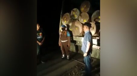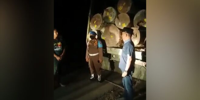 Akibatnya, kedua truk angkutan kayu log tersebut ditahan.