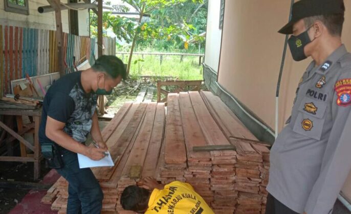 “Kemudian kami menemukan kapal kelotok yang tengah mengangkut kayu diseputaran TKP yang telah kami sebutkan tadi, selanjutnya mengamankan pelaku yang tertangkap tangan mengangkut, menguasai serta memiliki hasil hutan kayu ilegal yang tidak dilengkapi dokumen,” bebernya.