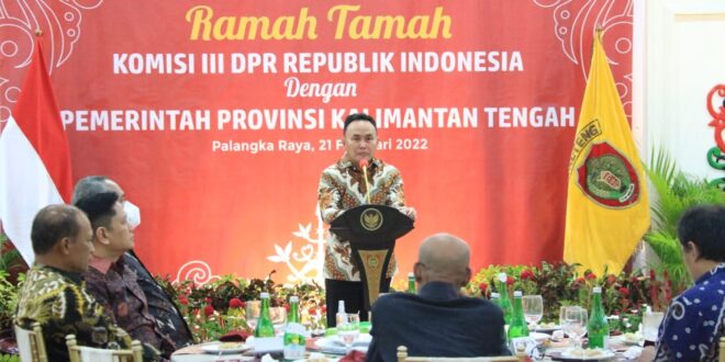 PALANGKA RAYA – Gubernur Kalimantan Tengah (Kalteng) H. Sugianto Sabran jalin Silahturahmi dan Ramah Tamah atas kunjungan kerja Komisi III Dewan Perwakilan Rakyat (DPR) RI ke Kalteng, bertempat di Istana Isen Mulang, Palangka Raya, Senin (21/2/2022).