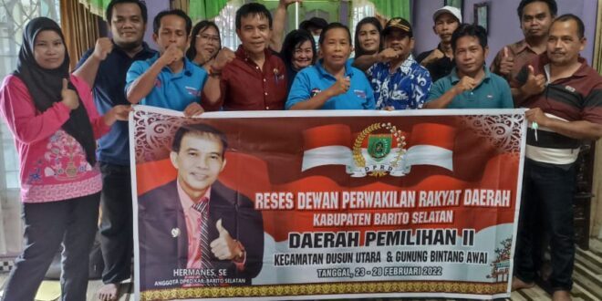 Beritakalteng.com, BUNTOK – Jaring aspirasi warga, Anggota DPRD Kabupaten Barito Selatan, Hermanes melaksanakan reses di empat Desa di kecamatan Dusun Utara dan Kecamatan Gunung Bintang Awai (GBA).