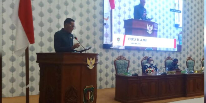 Foto : Eterly selaku juru bicara saat menyampaikan pandangan fraksi terhadap lima buah raperda.