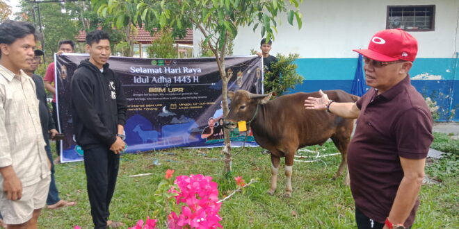 “kita juga mengapresiasi kepada Rektor UPR, Dr. Andrie Elia yang sudah memberikan sampi kurban. Nantinya sapi kurban ini akan kita bagikan atau kita salurkan kepada mahasiswa yang benar-benar membutuhkan dan juga masyarakat di lingkungan UPR,” kata Gusti