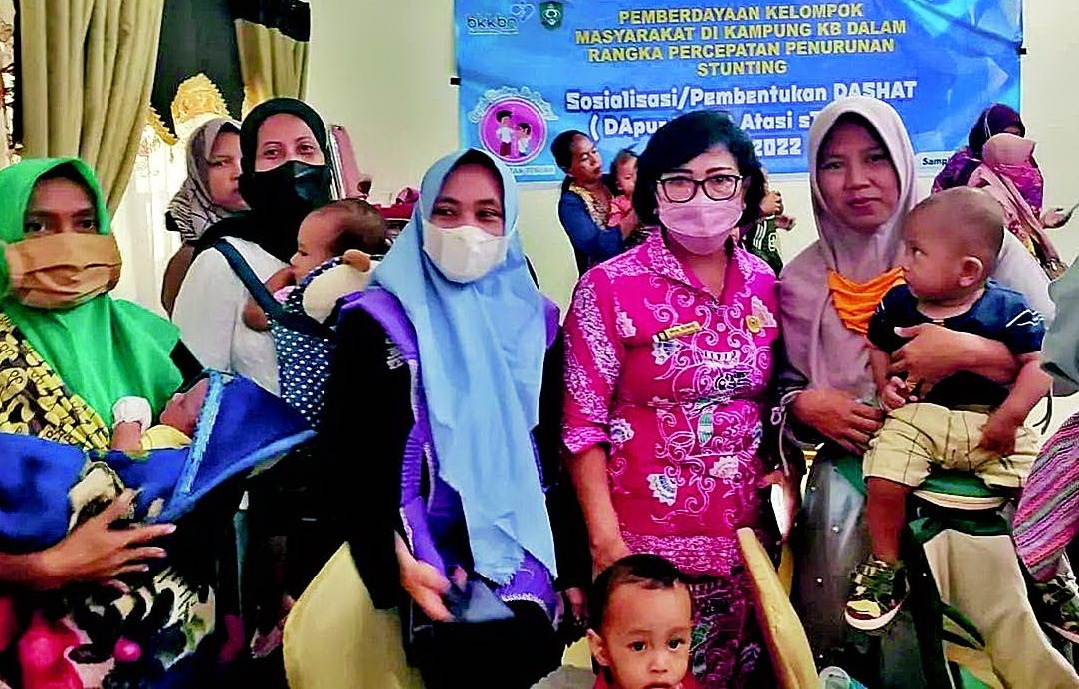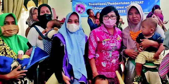 FOTO : Ketua DPRD Kabupaten Kotim Dra Rinie bersama ibu-ibu serta anaknya saat menghadiri sosialisasi penangganan stunting, belum lama ini.