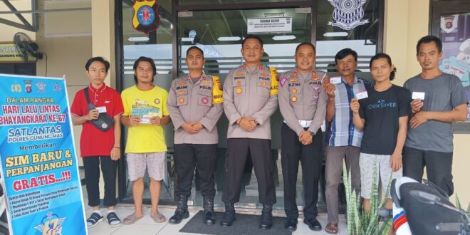 Kapolres Gumas AKBP Irwansah, melalui Kasat Lantas, AKP Azmi Halim Permana mengatakan, pihaknya memberikan SIM gratis tersebut dalam rangka memperingati HUT lalu lintas yang ke 67 tahun, dan juga sebagai bentuk kepedulian kepada warga.