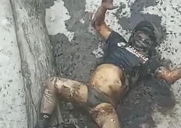 Kondisi mayat yang diperkirakan sudah 4 hari tersebut sudah hampir membusuk dan posisi korban dalam keadaan terlentang dengan mengunakan helm, sepatu hitam, kaos hitam dan hanya mengunakan celana dalam saja.