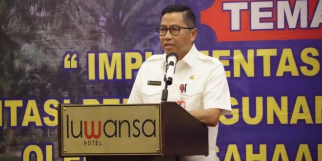 BERITAKALTENG.COM, PALANGKA RAYA – Gubernur Kalimantan Tengah, H. Sugianto Sabran melalui Asisten Ekonomi dan Pembangunan Setda Provinsi Kalteng, Leonard S. Ampung, membuka kegiatan Sosialisasi Peraturan terkait Kewajiban Fasilitasi Pembangunan Kebun Masyarakat di Hotel Luwansa, Kota Palangka Raya, Rabu (26/10/2022).