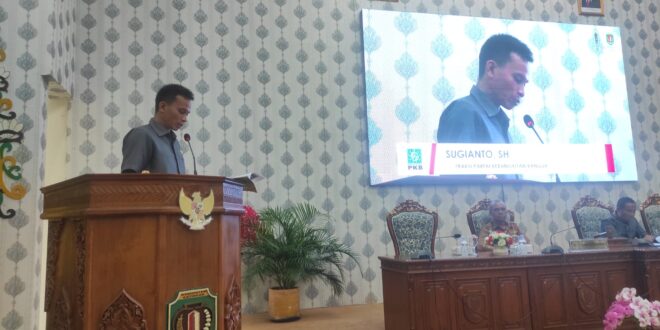 Atas hal itu Sugianto selaku juru bicara fraksi PKB pada paripurna dengan agenda menyampaikan pandangan fraksi-fraksi, selasa (1/11/2022) kemarin, diruang rapat paripurna menyampaikan, agar pembahasan raperda yang telah disampaikan bisa dilakukan sesuai jadwal yang telah disepakati.