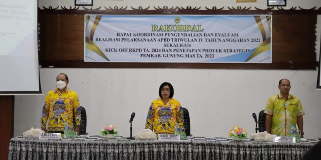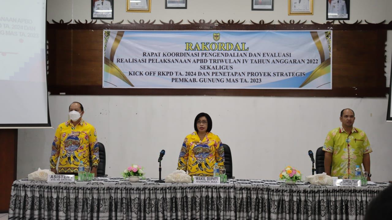 Wakil Bupati Gumas Efrensia LP Umbing mengatakan, ada empat hal yang akan menjadi perhatian semua SOPD. Yang mana, rangka optimalkan sisa waktu pada tahun anggaran 2022 ini untuk menyelesaikan dokumen administrasi kegiatan dan tahap-tahap akhir penyelesaian pembangunan fisik, tahun anggaran 2023 APBD sudah didepan mata.