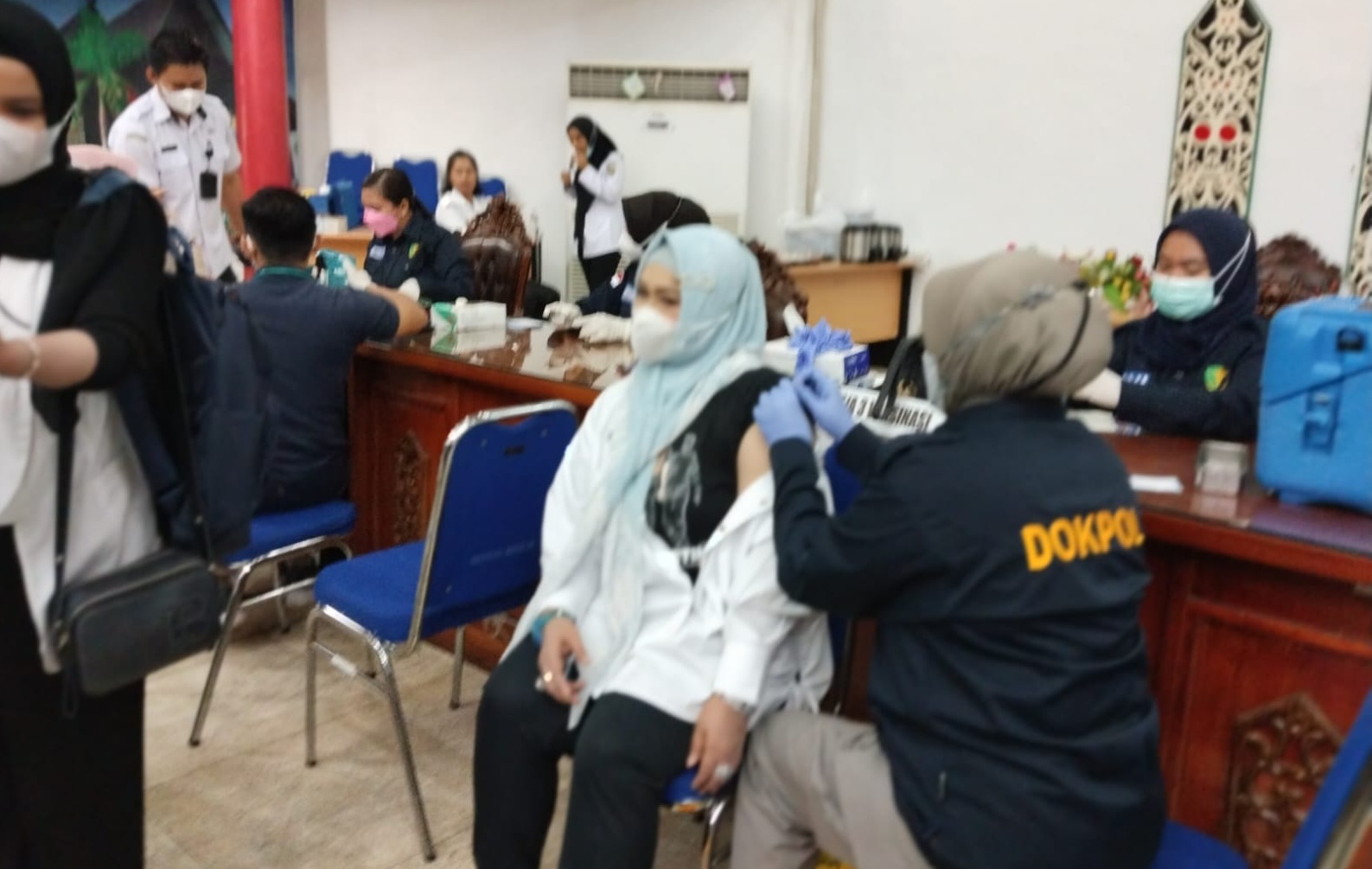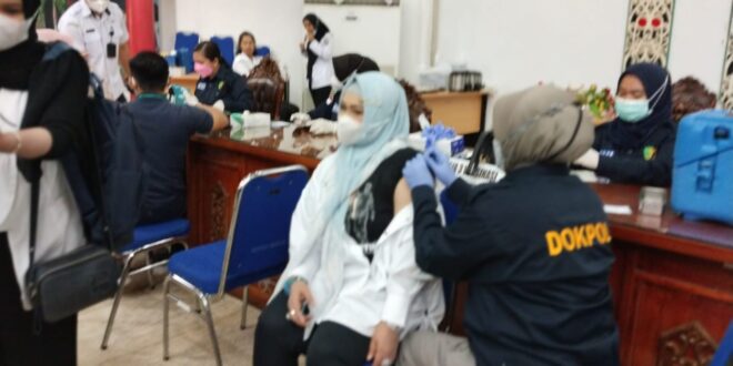 FOTO : Wakil Wali Kota Palangka Raya Hj Umi Mastikah, saat mengikuti suntik vaksin booster dosis ke dua yang digelar Sekretariat Dewan Kota Palangka Raya.