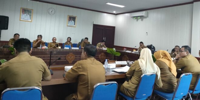 Kegiatan rapat yang di pimpin Staf Ahli (Sahli) Gubenur Bidang, Ekonomi, Keuangan Dan Pembangunan, Yuas Elko. hadir mewakili Lingkup Pemprov Kalteng.
