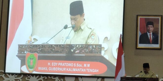 Wakil Gubernur Kalimantan Tengah H. Edy Pratowo S.Sos., M.M dalam pidato singkatnya menyampaikan apresiasi dan terimakasih kepada DPRD Prov. Kalteng atas kerjasama terkait pembahasan Raperda Pertanggungjawaban Pelaksanaan APBD.