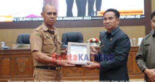KASONGAN – Sekda Kabupaten Katingan Pransang menyerahkan berkas Laporan Pertanggungjawaan (LPJ) Anggaran Pendapatan dan Belanja Daerah (APBD) Katingan tahun anggaran 2023 kepada Ketua DPRD Kabupaten Katingan Marwan Susanto, Rabu (26/6/2024) diruang sidang paripurna DPRD Kabupaten Katingan. Penyerahan dokumen LPJ APBD tahun anggaran 2023 tersebut diterima langsung oleh Ketua DPRD Kabupaten …