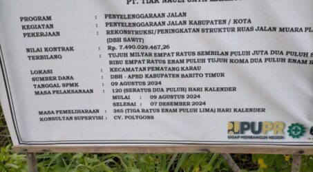 Beritakalteng.com – Tamiang Layang – Akibat tidak mampu selesaikan pekerjaan, proyek peningkatan ruas jalan Muara Plantau – Jihi, Kecamatan Pematang Karau, Kabupaten Barito Timur diputus kontrak.