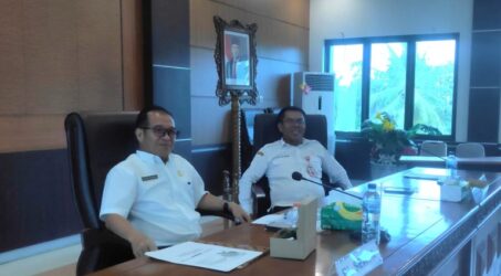 Foto: Pj Sekda Kabupaten Barito Timur, Misnohartako didampingi Kepala Inspektorat Josmar L Banjarnahor berserta kepala OPD mengikuti acara launching Survei Penilaian Integritas (SPI) Tahun 2024 bertempat di ruang rapat Bupati.