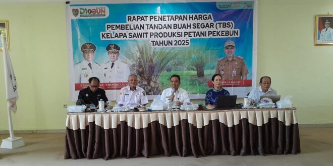 PALANGKA RAYA – Periode kedua Bulan Januari 2025, Pemerintah Provinsi Kalimantan Tengah melalui Dinas Perkebunan Prov. Kalimantan Tengah menggelar Rapat Penetapan Harga Pembelian Tandan Buah Segar (TBS) Kelapa Sawit Produksi Pekebun, bertempat di Aula Dinas Perkebunan Prov. Kalteng, Rabu (5/2/2025).