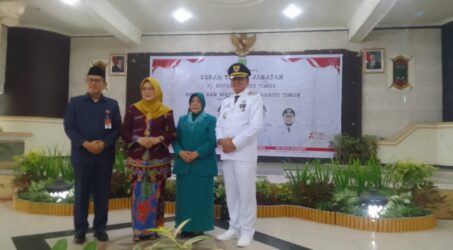 Foto: Pj Bupati Barito Timur yang lama Indra Gunawan menyerahkan jabatan ke Bupati Barito Timur, M. Yamin.