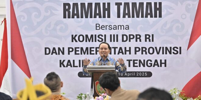 Palangka Raya – Gubernur Kalimantan Tengah (Kalteng) H. Agustiar Sabran menggelar ramah tamah bersama Komisi III DPR RI di Istana Isen Mulang, Rumah Jabatan Gubernur, Kamis (10/4/2025). Pertemuan ini menjadi momentum penguatan kerja sama antara pemerintah daerah dengan legislatif pusat dalam mendorong pembangunan yang berkeadilan dan berkelanjutan.