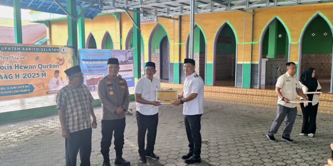 “Sebagaimana kita ketahui bersama, pelaksanaan ibadah qurban adalah salah satu wujud ketakwaan dan ketaatan kita kepada Allah SWT, serta momentum untuk mempererat solidaritas sosial dan kepedulian antar sesama,” ucapnya pada saat penyaluran secara simbolis hewan qurban di halaman Masjid Agung Baiturrahman, Buntok, Rabu (4/6/2025).