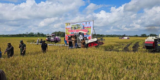 Kapuas – Pemerintah Provinsi Kalimantan Tengah kembali menunjukkan keseriusannya dalam memperkuat ketahanan pangan daerah. Hal ini ditandai dengan pelaksanaan panen raya padi yang berlangsung di Desa Terusan Makmur, Kecamatan Bataguh, Kabupaten Kapuas, Senin (14/7/2025). Kegiatan ini menjadi bukti nyata bahwa berbagai program pangan yang dijalankan pemerintah tidak berhenti pada perencanaan, tetapi benar-benar dirasakan hingga tingkat petani.