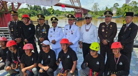 Beritakalteng.com – Puruk Cahu – Peringatan Hari Ulang Tahun (HUT) ke-80 Kemerdekaan Republik Indonesia di Kabupaten Murung Raya berlangsung istimewa. Sebuah bendera Merah Putih raksasa berukuran panjang 10 meter dan lebar 6 meter telah berkibar di bawah jembatan Merdeka diatas aliran sungai Barito Kota Puruk Cahu, Minggu (17/8/2025).