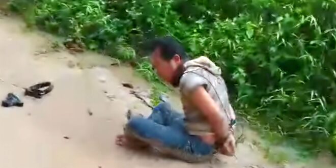 Dalam video berdurasi 46 detik yang beredar di reel Facebook akun atas nama Santo SHa, terlihat seorang pria muda tertunduk lemas di tanah sembari tangan terikat kebelakang tubuhnya, di dekat pria tersebut tampak sepucuk pistol yang belum diketahui pasti apakah itu senjata api ataukah air soft gun.