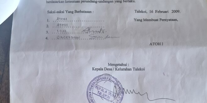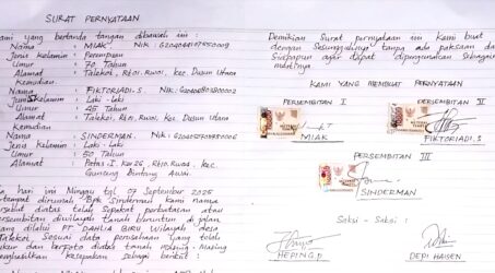 “Surat keterangan itu benar kami yang buat bersama – sama, saya dan ibu saya (Miak) adalah yang ikut bertanda tangan di dalam surat tersebut di atas meterai,” tukas Sinderman.