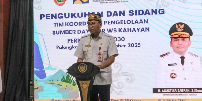 Palangka Raya, Beritakalteng.com – Pelaksana Tugas (Plt.) Sekretaris Daerah Provinsi Kalimantan Tengah, Leonard S. Ampung, resmi mengukuhkan Tim Koordinasi Pengelolaan Sumber Daya Air (KPSDA) Wilayah Sungai Kahayan Tahun Anggaran 2025, bertempat di Aula Jayang Tingang, Kantor Gubernur Kalteng, Rabu (26/11/2025).