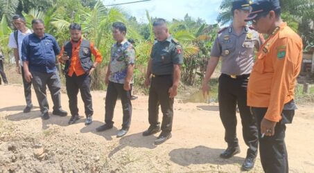 Foto: Wakil Bupati Barito Timur, Adi Mula Nakalelu beserta jajaran saat mengunjungi jembatan ambles di RT 8 Desa Bentot, Kecamatan Patangkep Tutui.