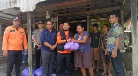 Foto: Wakil Bupati Barito Timur Adi Mula Nakalelu saat memberikan bantuan sembako buat warga dampak banjir.