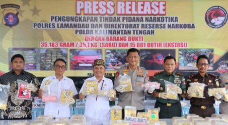 Dalam pengungkapan tersebut, petugas mengamankan barang bukti berupa 35,1 kilogram sabu serta 15.061 butir pil ekstasi yang diduga kuat akan diedarkan di wilayah Kalimantan Tengah.