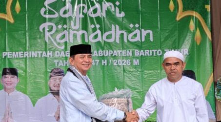 Beritakalteng.com – Tamiang Layang – Bupati Barito Timur M Yamin, didampingi Istri sekaligus Ketua TP PKK Kabupaten Barito Timur Ny Misnawaty M Yamin bersama kepala OPD dan Forkopimda, menggelar buka puasa bersama di Masjid Miftahul Ulum, Desa Banyu Landas, Kecamatan Benua Lima, Jumat (6/3/2026).